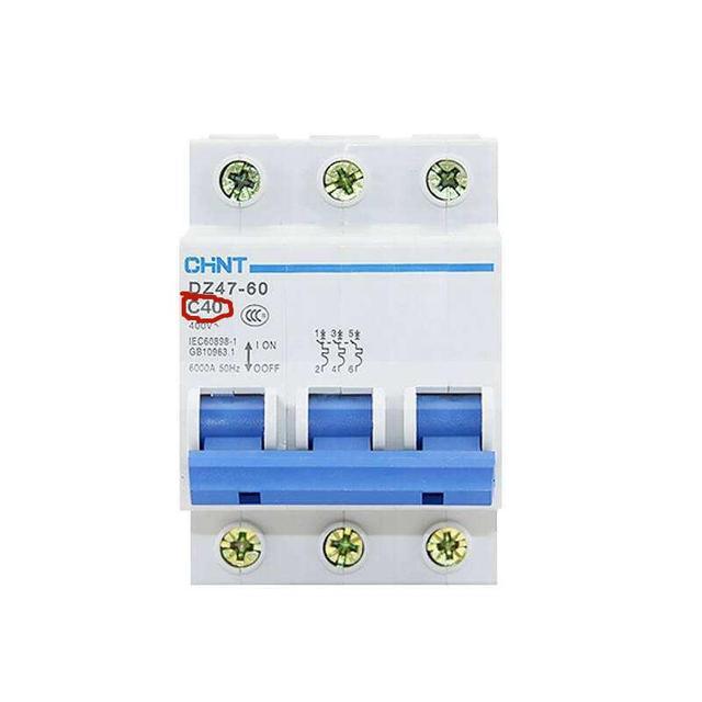 如果機器旁邊的閘跳了,查看機器閘空氣開關的額定電流是多少,如下圖,也就是C后面的數字,再對應上表,如果不符合則要換相應額定電流的空氣開關,就需要更換40A或者50A的空氣開關。