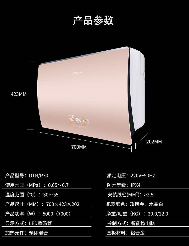 產品中心 > 速熱電熱水器系列> 速熱式電熱水器DTR-P30恒溫出水